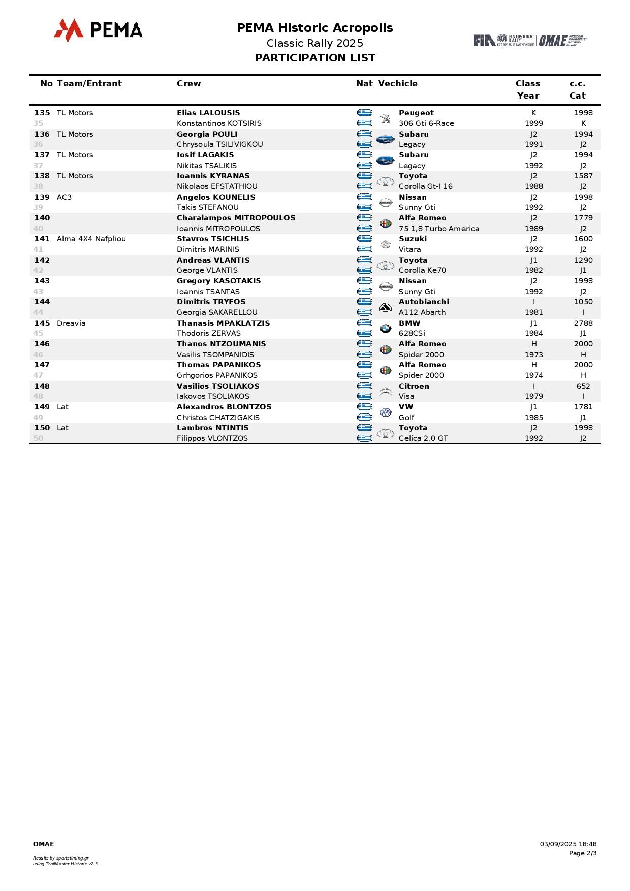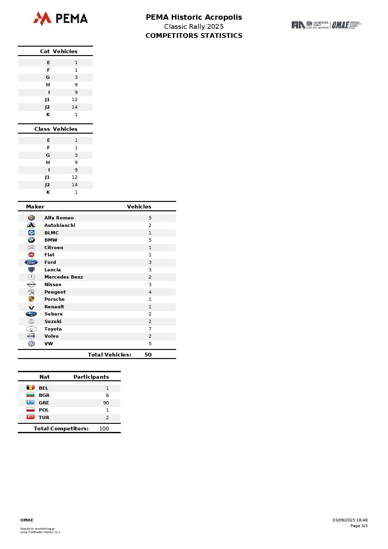 PEMA ΙΣΤΟΡΙΚΟ ΡΑΛΛΥ ΑΚΡΟΠΟΛΙΣ 2025 – REGULARITY – ΣΥΜΜΕΤΟΧΕΣ